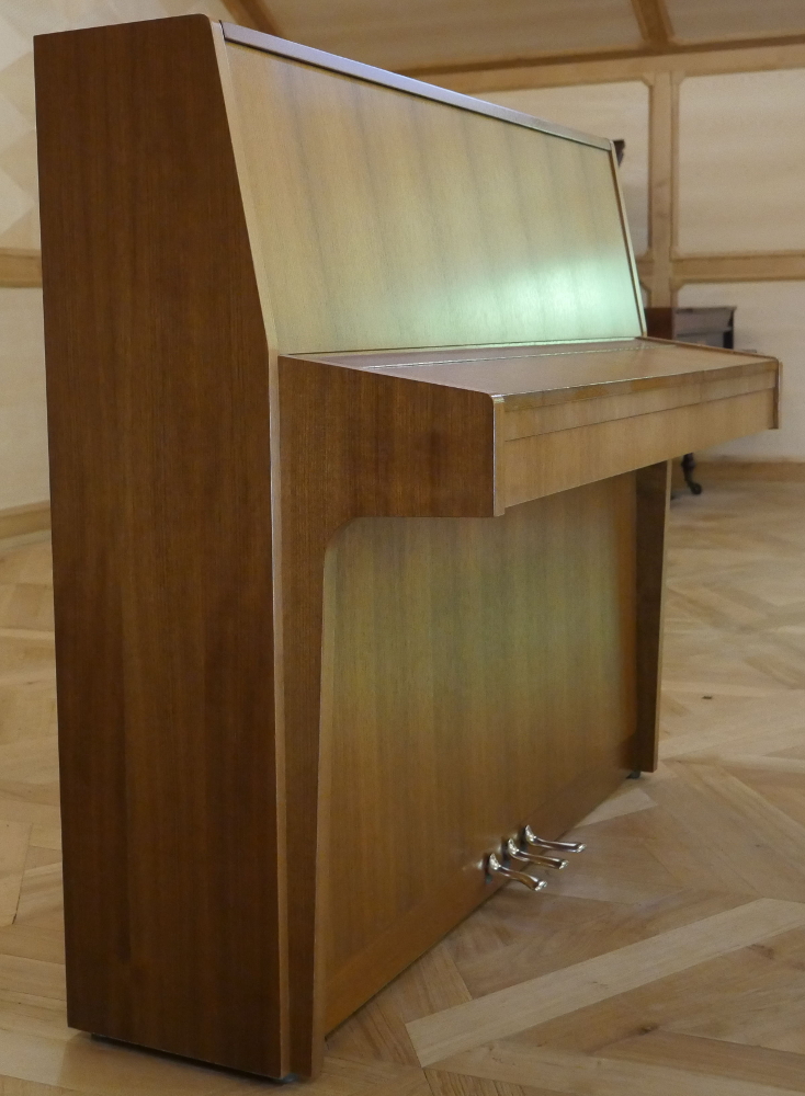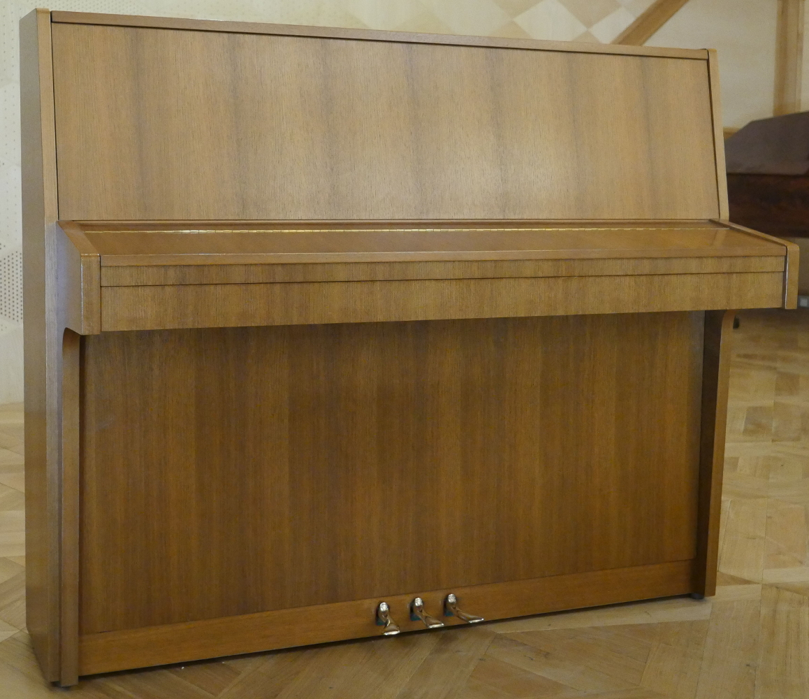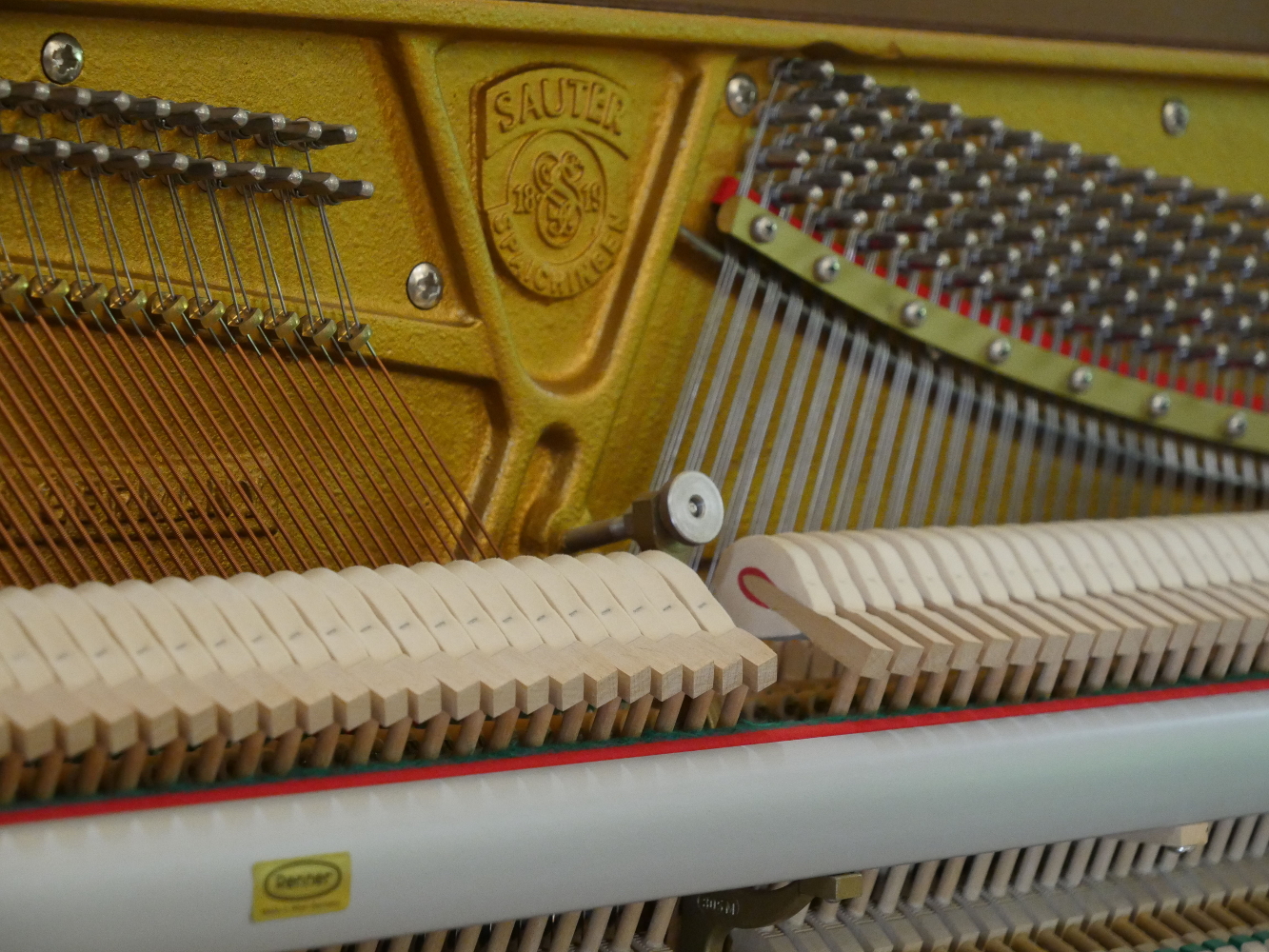 Ce piano Sauter a été fabriqué en Allemagne. La mécanique est une Renner type R2 spécifique des pianos Sauter et qui favorise la répétition. Il est dans un état proche du neuf et a très peu joué. Tout les éléments sont d’origine (marteaux, cordes…). La sonorité est puissante mais pas agressive avec des basses généreuses et un bon équilibre entre la rondeur et la brillance. C’est un instrument de milieu de gamme.